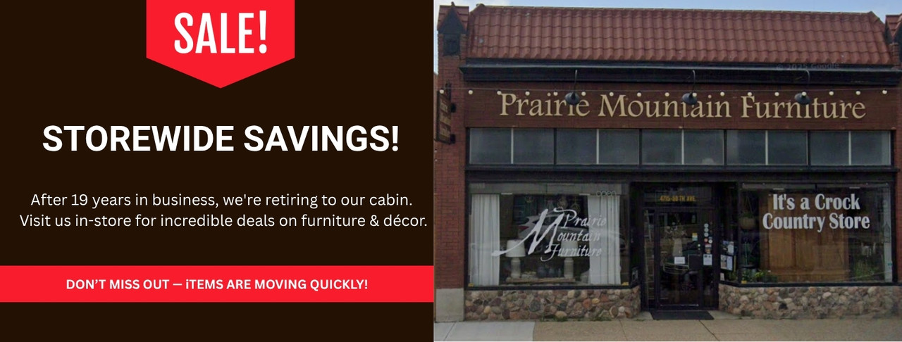 Whether you prefer the term “country,” “rustic,” “modern farmhouse,” or something else altogether, Prairie Mountain Furniture & It’s a Crock Country Store have everything you need to curate the cozy, comfortable feeling you want your home to emulate. From stunning, heirloom quality handmade wood furniture right down to country linens and homey candles, our stock is constantly being updated so there’s always something new to see. If you don’t find exactly what you are looking for, let us know! We will find it for you.